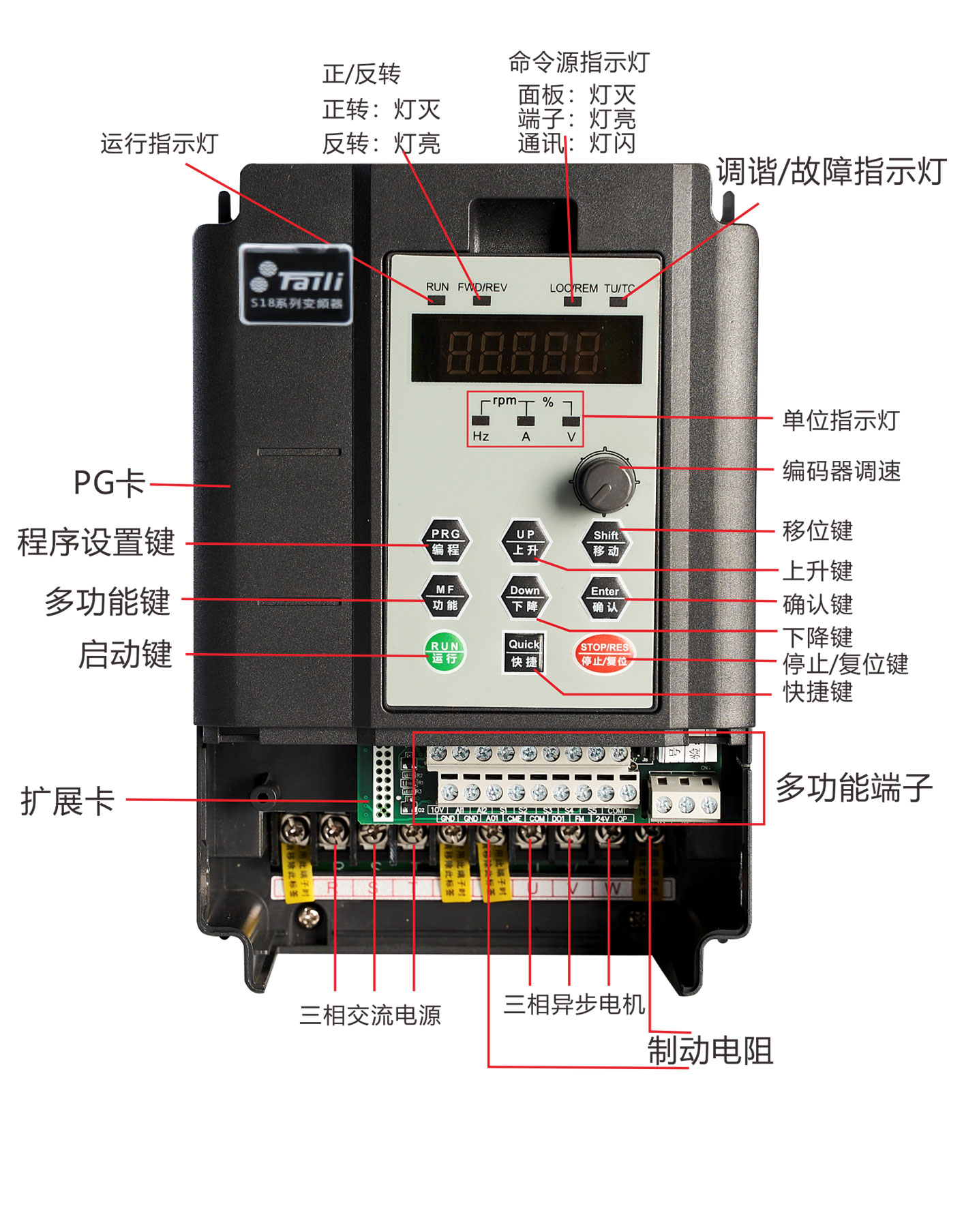 16段速、簡易PLC、PID控制及擺頻控制;