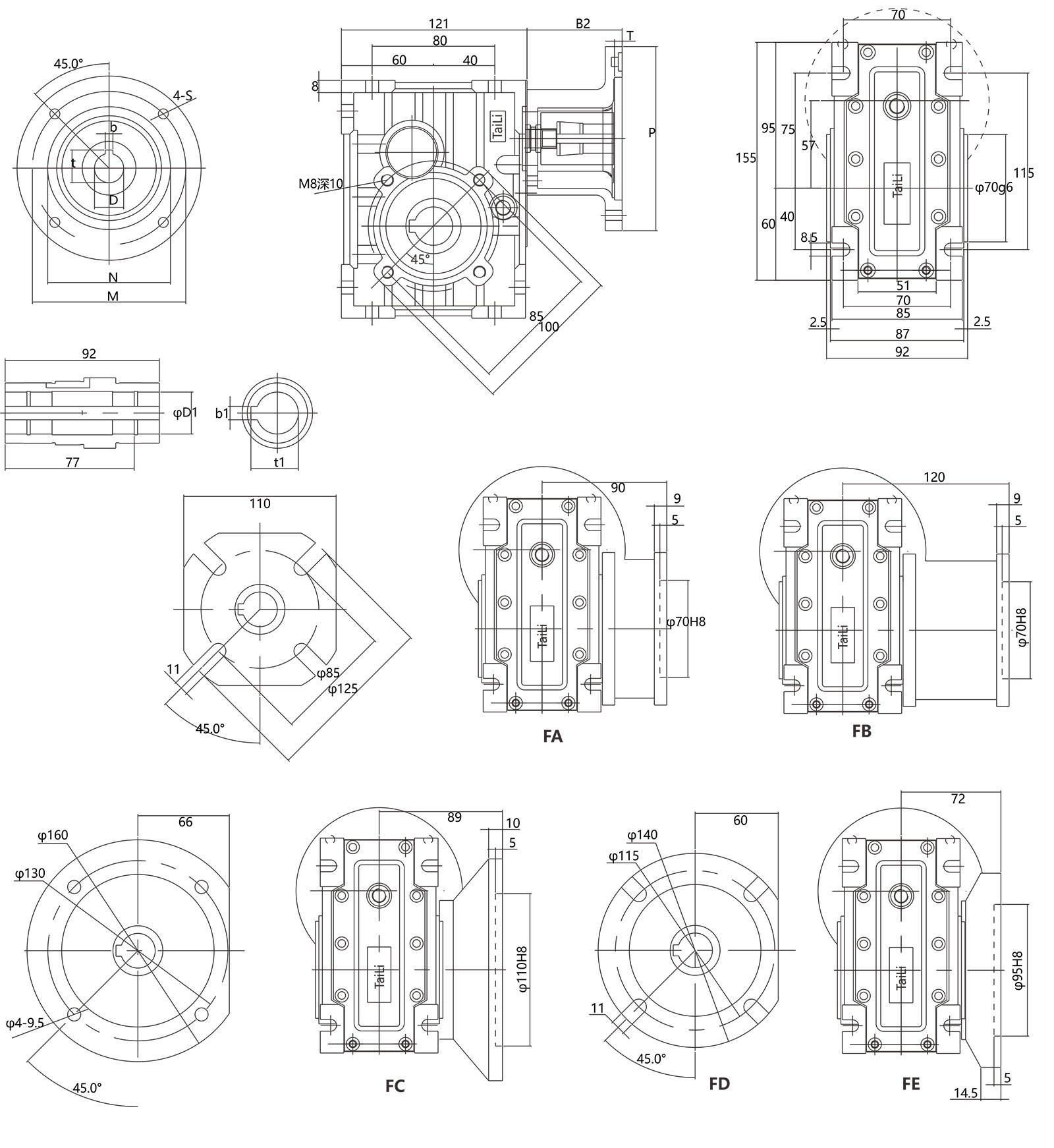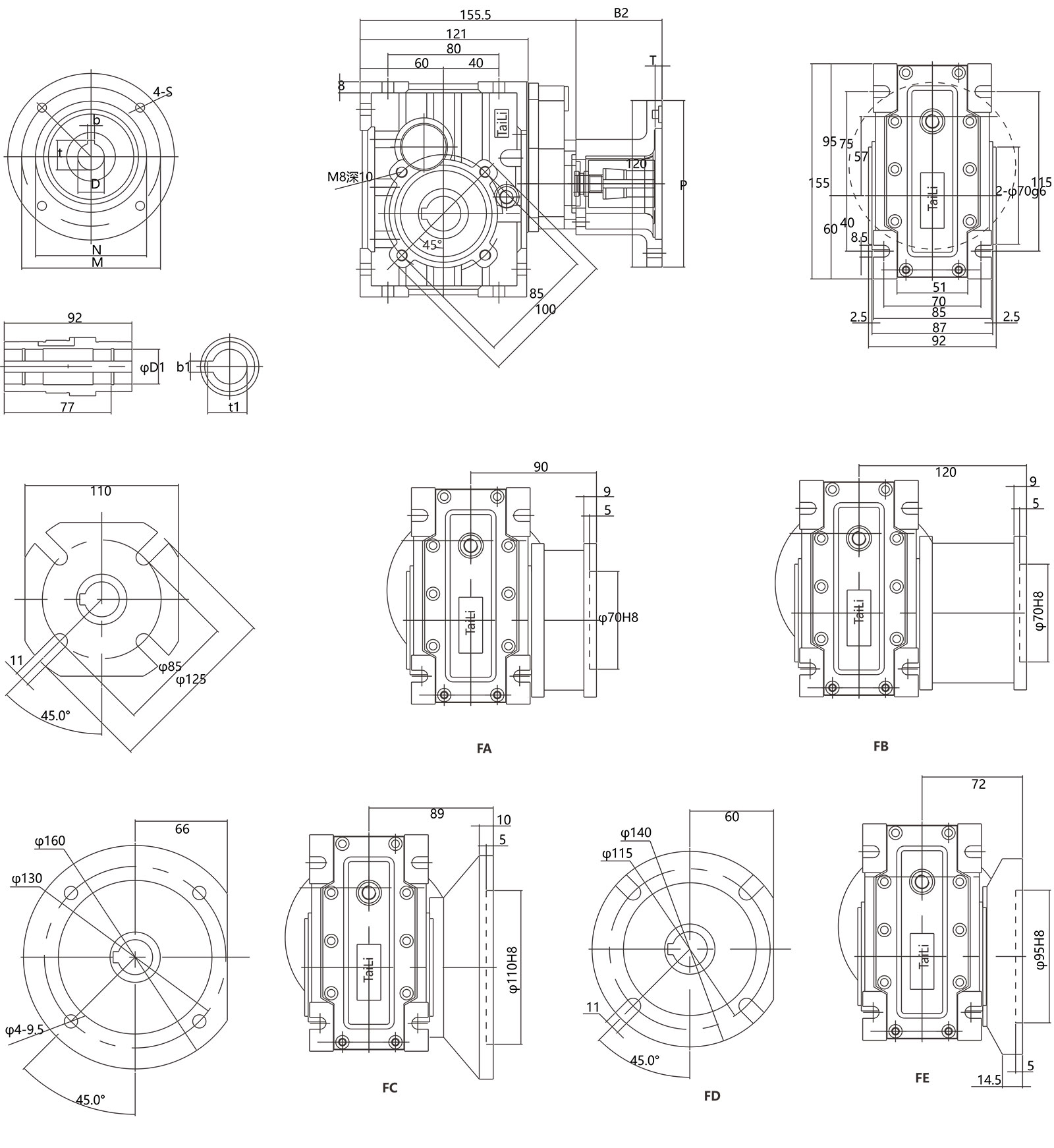 TKM系列減速 器安裝尺寸與TNRV系列渦輪蝸桿減速器完全兼容( TKM28與TNRV050部分尺寸不同) ;