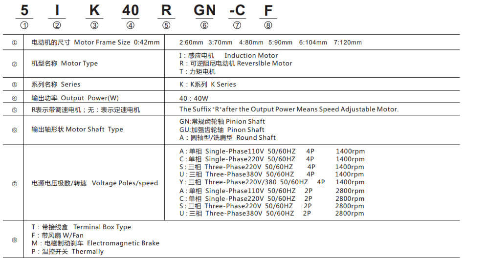 微型交流齒輪減速電機(jī)型號(hào)定義
