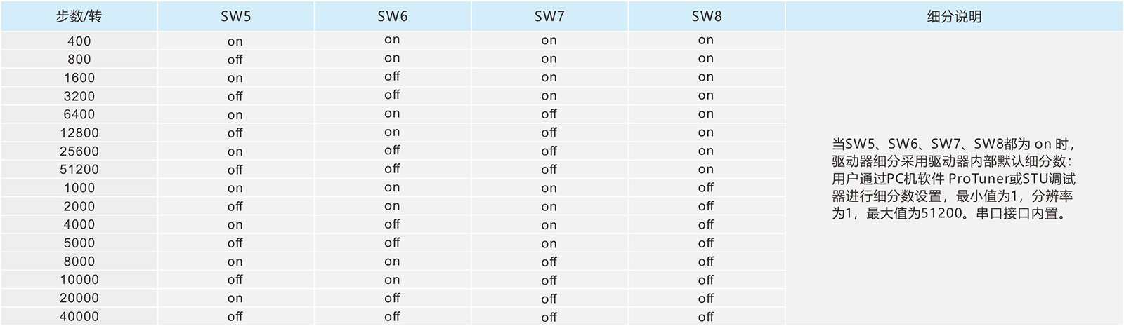 全新 32 位 DSP 技術(shù) 可驅(qū)動4,6,8線兩相步進(jìn)電機(jī)超低振動噪聲光隔惠差分信號輸入內(nèi)置高細(xì)分脈沖響應(yīng)頻率最高可達(dá) 500KHz(出廠默認(rèn)200KHz) 參數(shù)上電自動整定功能電流設(shè)定方便,可在 0.1-5.6A之間任意選擇 變電流控制使電機(jī)發(fā)熱大為降低細(xì)分設(shè)定范圍為200-51200靜止時電流自動減半具有過壓、欠壓、過流等保護(hù)功能