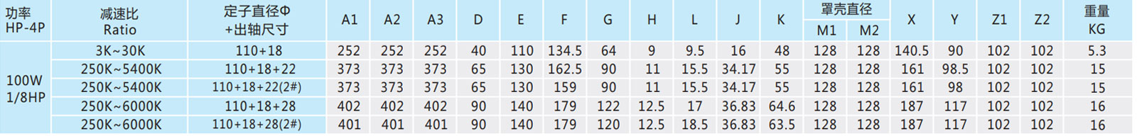 A2、M2、Z2為單相馬達(dá)尺寸。
