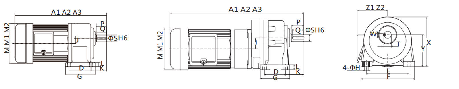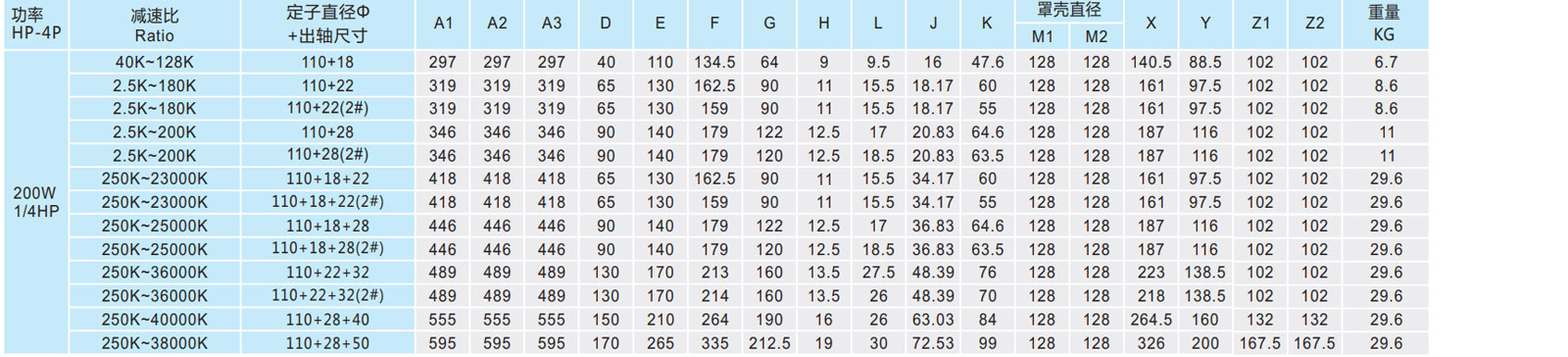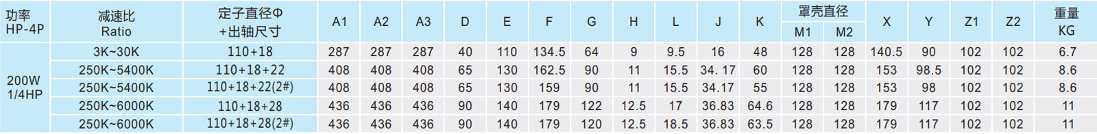A2、M2、Z2為單相馬達(dá)尺寸。