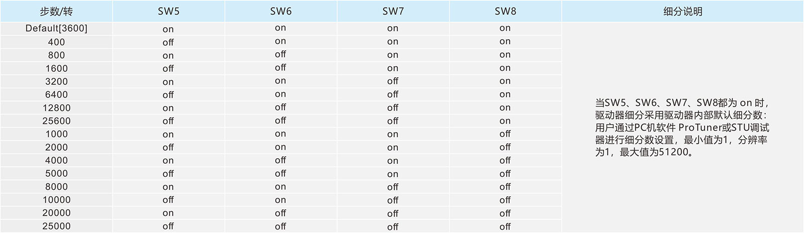 全新 32 位 DSP 技術(shù) 可驅(qū)動4,6,8線兩相步進電機超低振動噪聲光隔惠差分信號輸入內(nèi)置高細(xì)分脈沖響應(yīng)頻率最高可達(dá) 500KHz(出廠默認(rèn)200KHz) 參數(shù)上電自動整定功能電流設(shè)定方便,可在 0.1-5.6A之間任意選擇 變電流控制使電機發(fā)熱大為降低細(xì)分設(shè)定范圍為200-51200靜止時電流自動減半具有過壓、欠壓、過流等保護功能