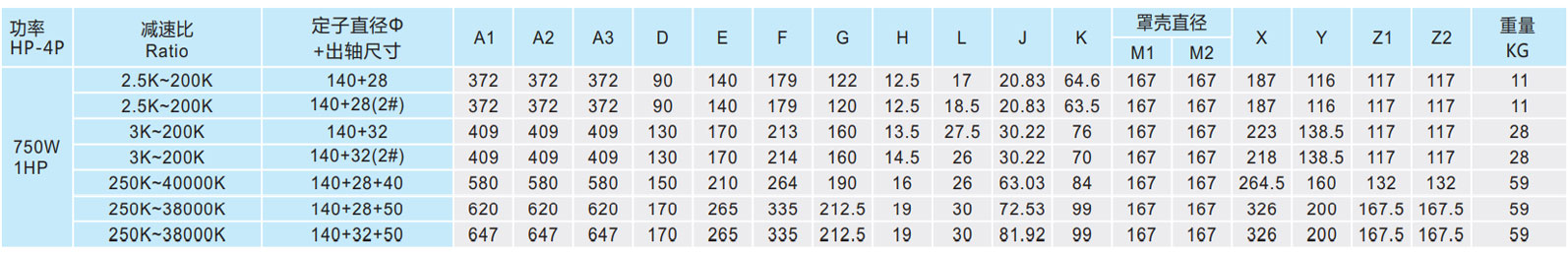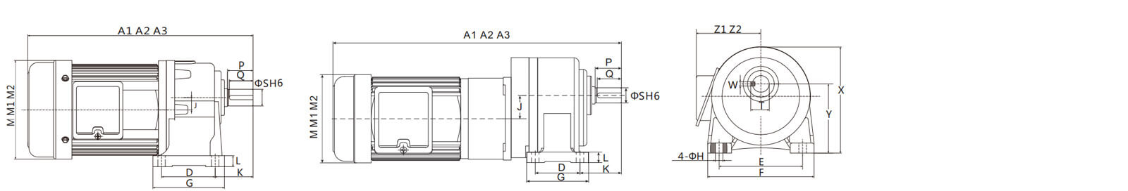 A2、M2、Z2為單相馬達(dá)尺寸。