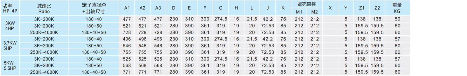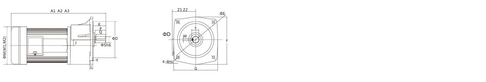 A2、M2、Z2為單相馬達(dá)尺寸。