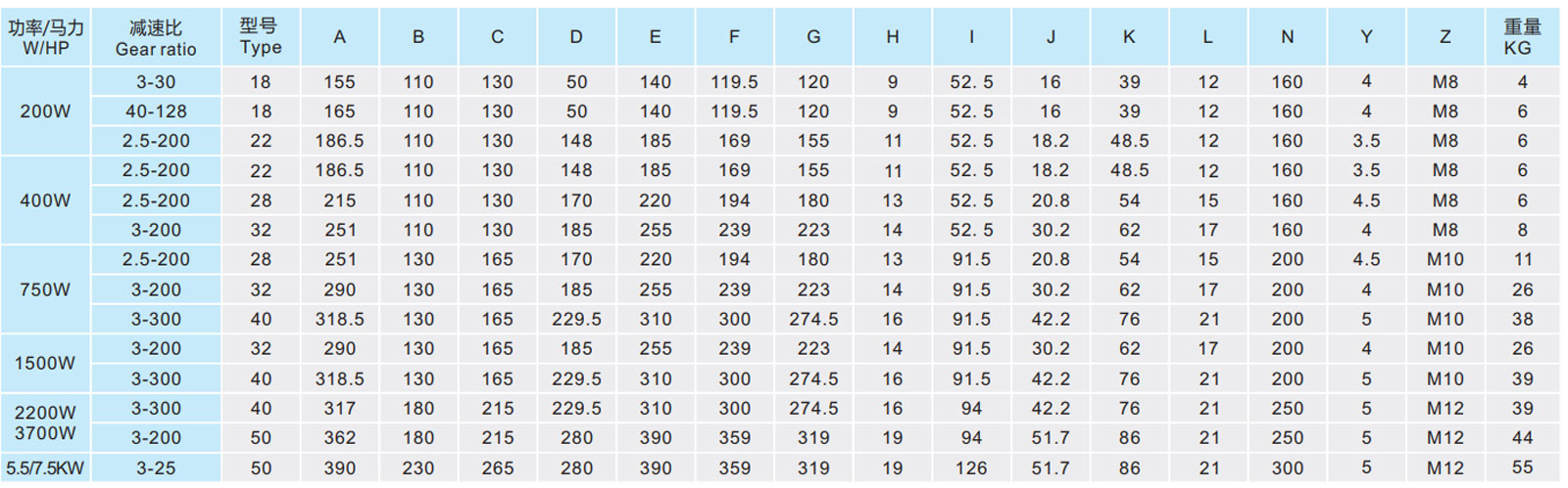 ▲ 表列轉(zhuǎn)速是基于電機(jī)異步轉(zhuǎn)速(50Hz:1400r/min、60Hz:1680r/min),額定負(fù)載時,實(shí)際轉(zhuǎn)速為表列轉(zhuǎn)速的80%-98%。