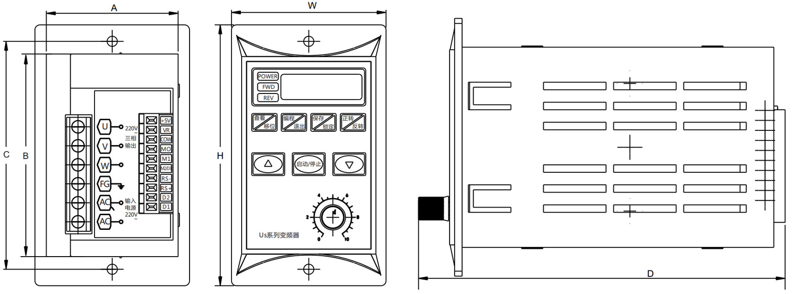 US系列變頻器體積小,安裝方便;調(diào)試簡單,參數(shù)簡潔易懂,能夠滿足 普通場合的要求,是專門針對220V/0.75KW以下的三相交流電機(jī)量身定做的,位設(shè)備制造業(yè)廣大客戶提供一體化解決方案 ,對降低系統(tǒng)成本,及提高系統(tǒng)可靠性具有很高價(jià)值。